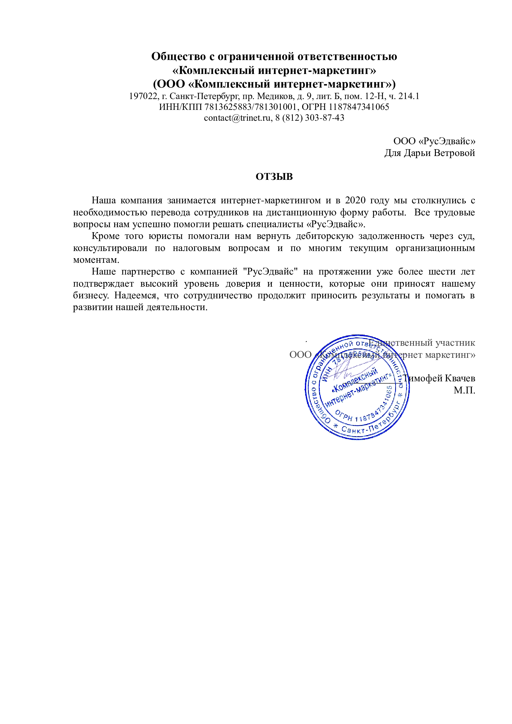 Наша команда состоит из специалистов в области трудового, корпоративного, антимонопольного, договорного, налогового, интеллектуального права, в штате есть финансисты и бухгалтеры. Все мы, как одна большая команда, работаем для вас и на вас.